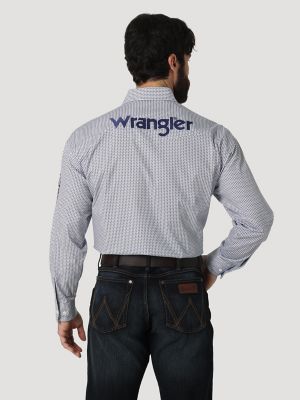 Men S Wrangler Logo Long Sleeve Button Down Print Shirt